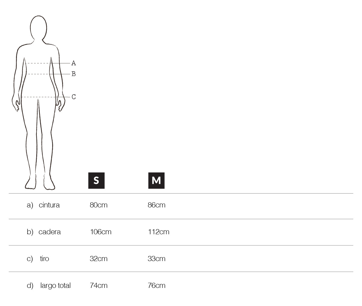 También podés tomarle las medidas a una prenda tuya similar y compararlas con las medidas de la tabla.