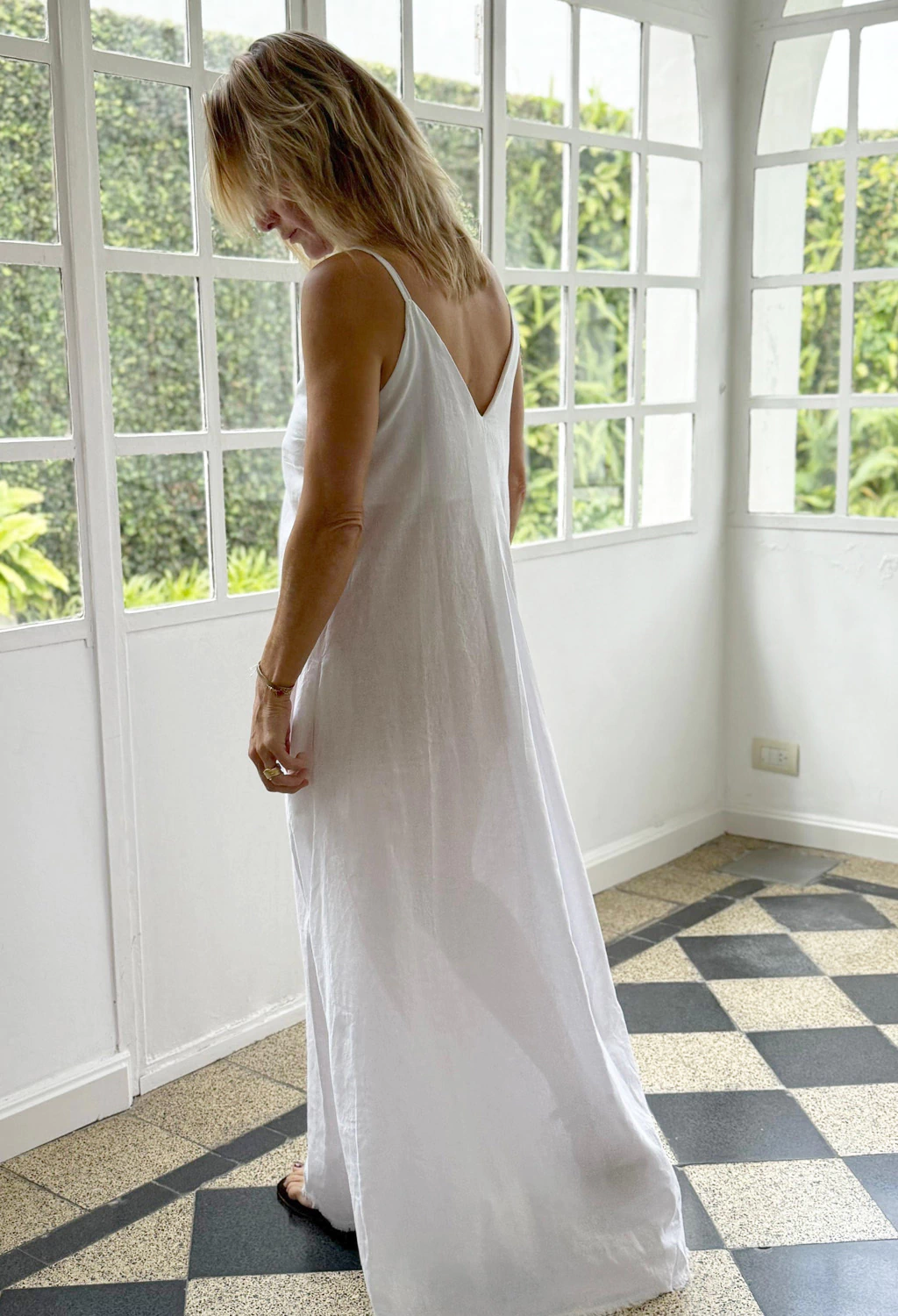 Vestido escote V largo por debajo de las rodillas, con tabla en delantero y en espalda. Con tiras ajustables en los hombros. Perfecto para los días de calor, cómoda y linda!