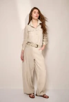 Material: Algodón 70% Lino 30%, bajo procesos artesanales de teñido y suavizado en lavadero, dando una terminación única a cada prenda.
